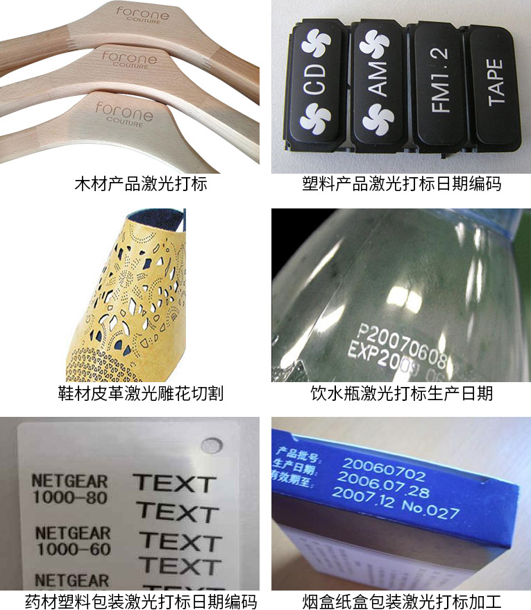 2、應(yīng)用于醫(yī)藥包裝激光打標、建筑石材激光打標、飲料包裝在線價格打標日期、橡膠制品激光打標、非金屬工藝禮品激光打標、皮革切割打標加工等行業(yè)。
