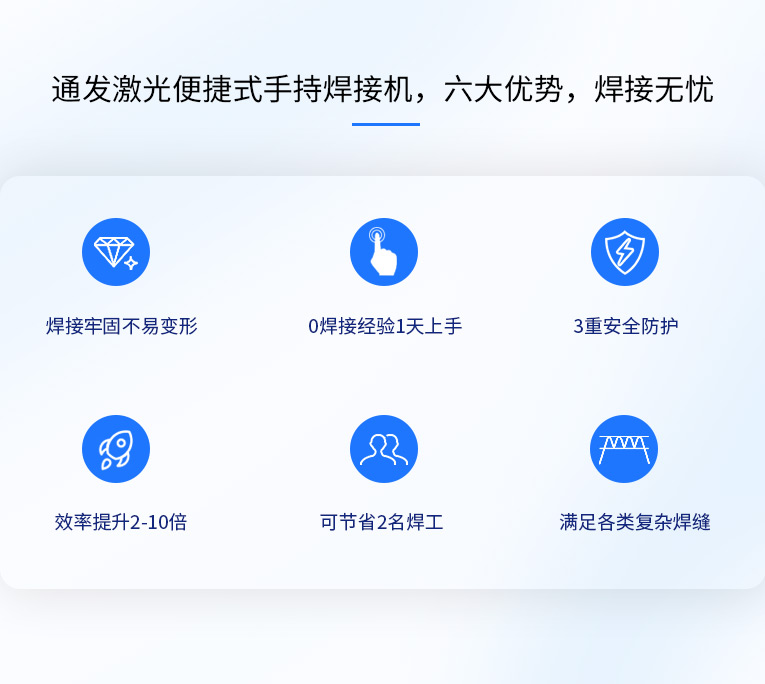 通發(fā)激光便捷式手持激光焊接機(jī),小巧便攜,方便移動,適合戶內(nèi)外外工地移動焊接,是遠(yuǎn)距離焊接大工件的全新焊接利器。
